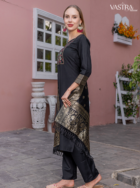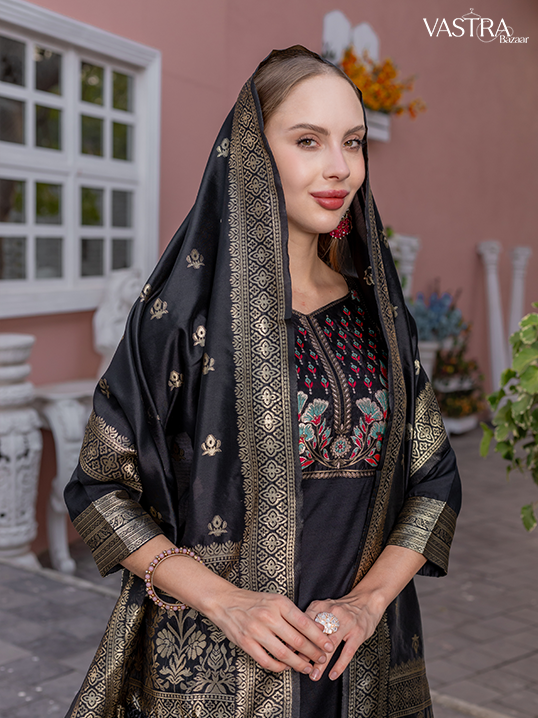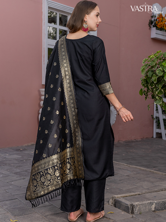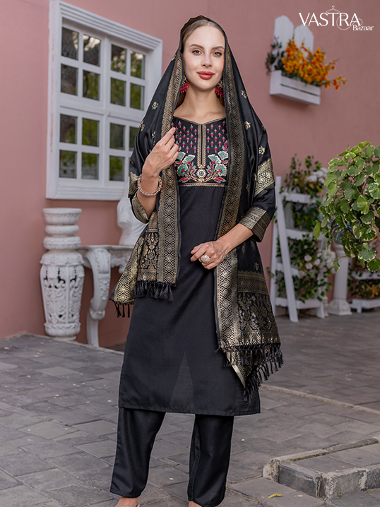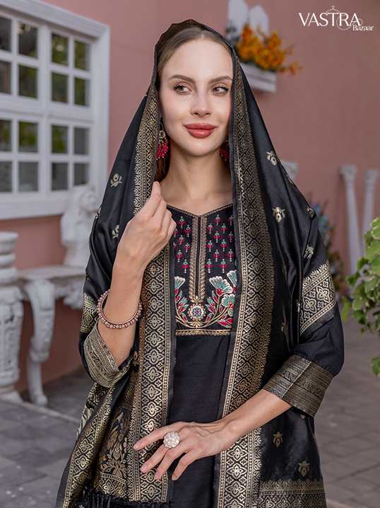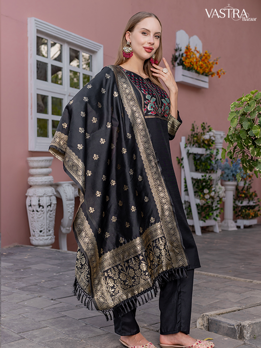 Traditional Embroidered Silk Suit Set with Dupatta