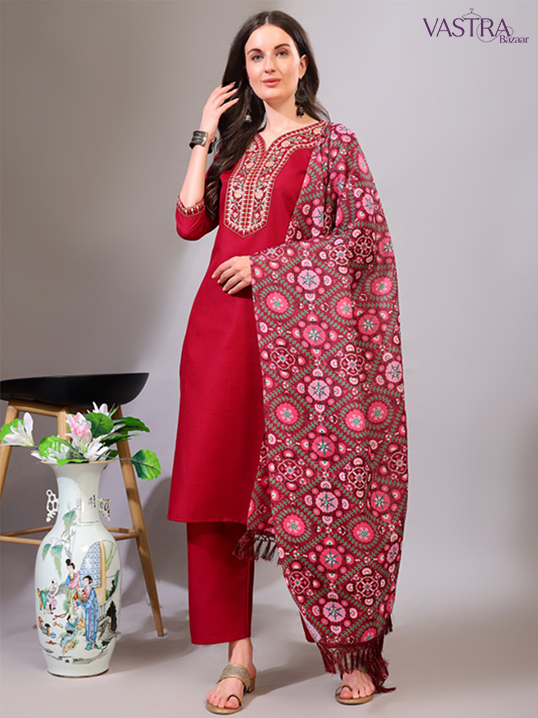 Pure Cotton Kurta Set With Dupatta